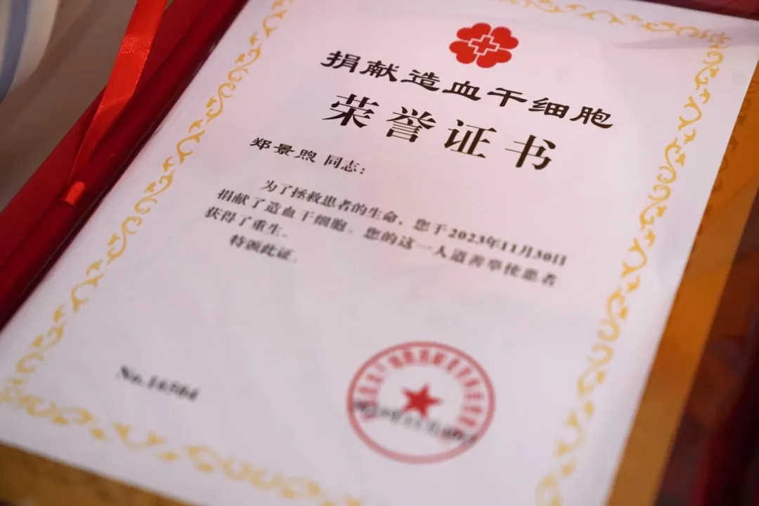 2019级郑景煦同学成功捐献造血干细胞