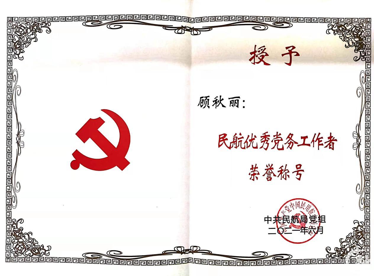 王宏伟、顾秋丽老师分别获民航优秀共产党员和民航优秀党务工作者荣誉称号