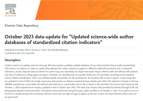 据悉,该榜单基于Scopus数据库的引用数据系统分析,使用被引数(区分自引和他引,提供自引数据)、H指数、Hm指数等6种关键指标综合评估,分为22个领域和176个细分子领域,为科学家长期科研表现提供了一个衡量指标,能够更客观、更真实地反映科学家的影响力。