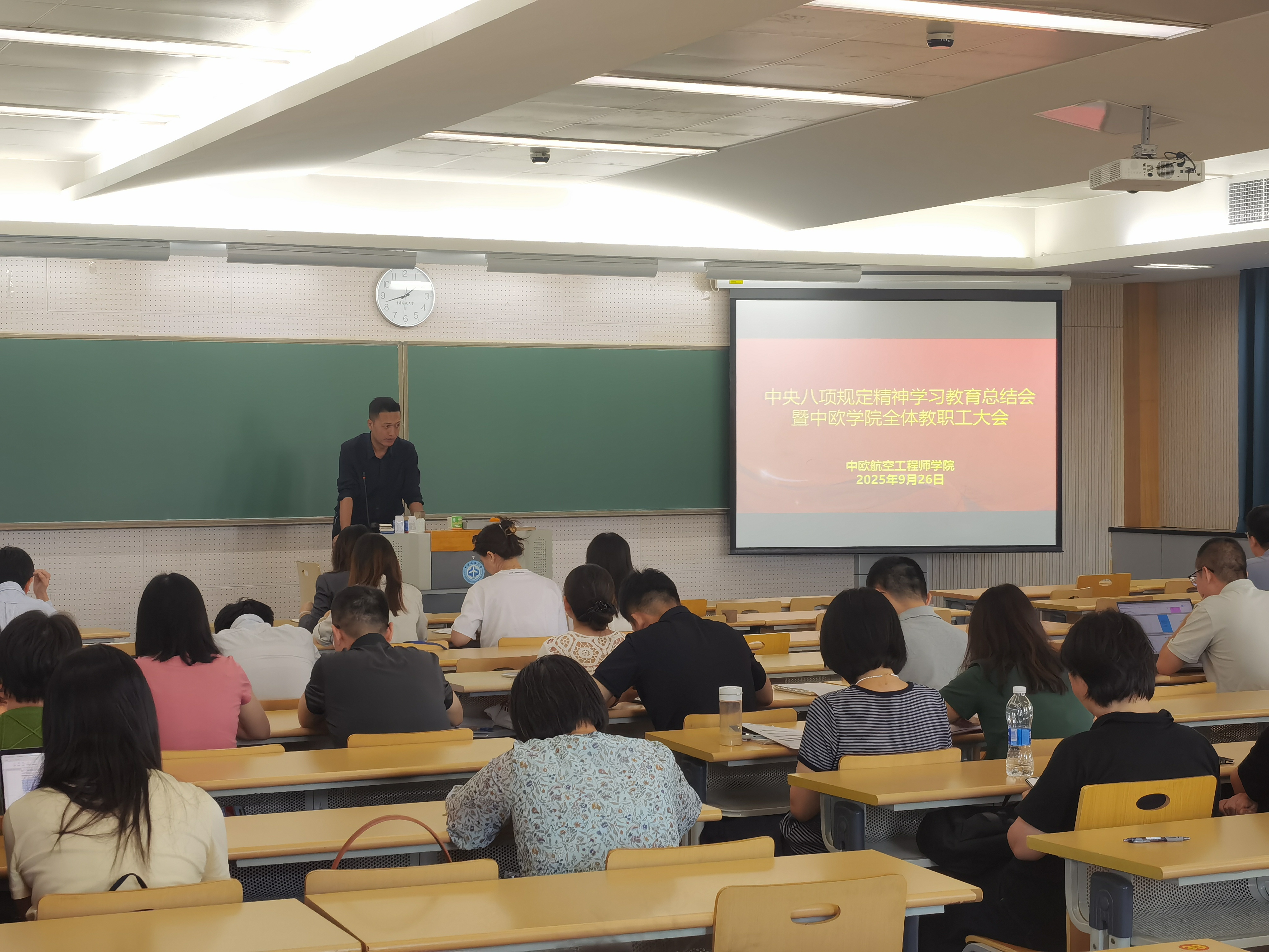 9月26日下午,中欧航空工程师学院召开党的建设暨深入贯彻中央八项规定精神学习教育总结会。学院全体教职工和学生党员参会。会上集中学习了习近平总书记关于作风...