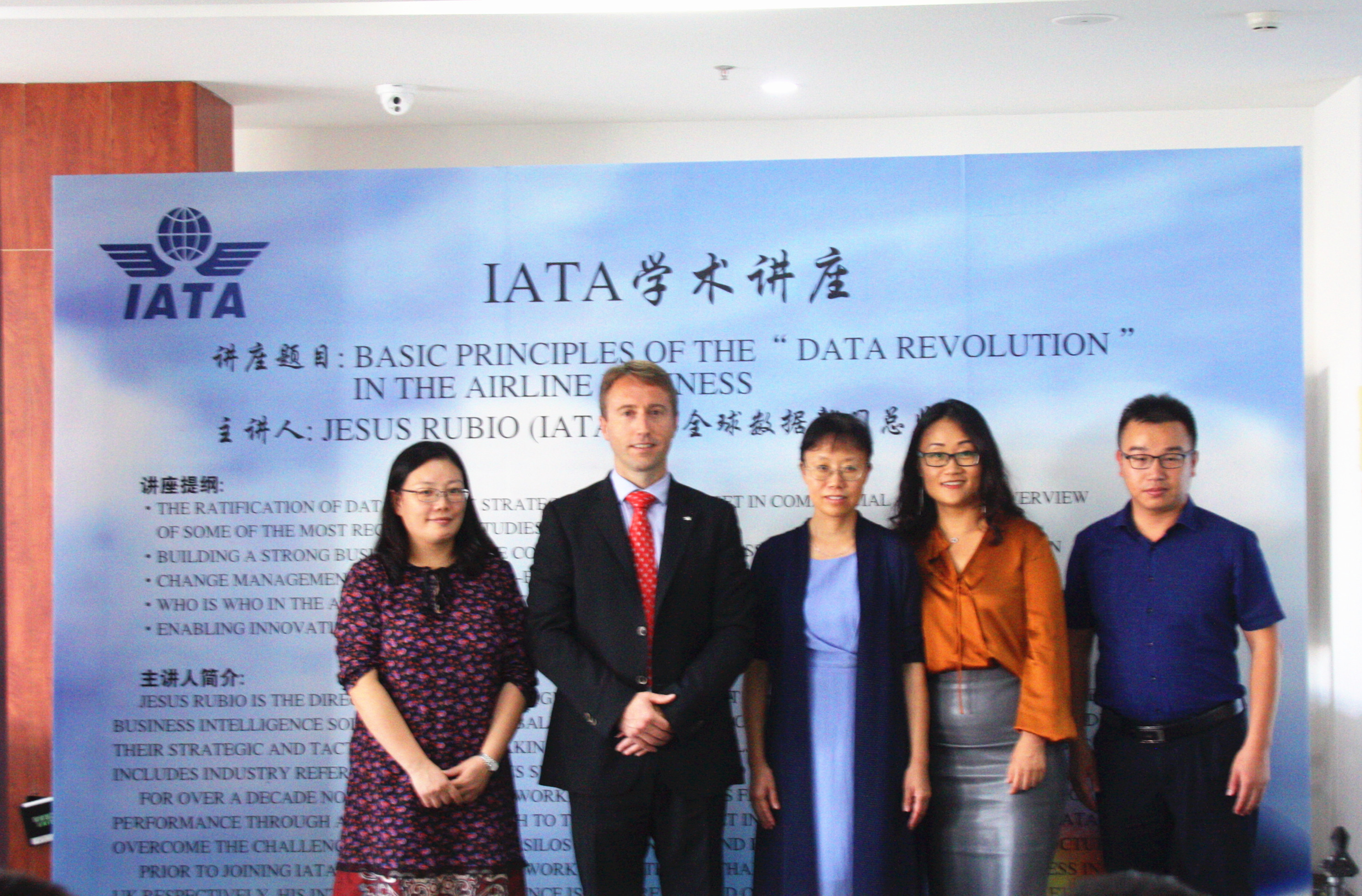 2019年9月24日下午,图书馆特邀IATA总部全球数据部门总监Jesus Rubio先生到馆为我校师生举办了主题为“Basic Principles of the “Data Revolution” in the Airline Business”的精彩讲座,同行的还有IATA全球数据服务运营总监江新女士。Jesus Rubio先生一行受到了我校图书馆馆长张青教授、国际处副处长刘媛媛、经管学院副院长李国栋的热情接待。