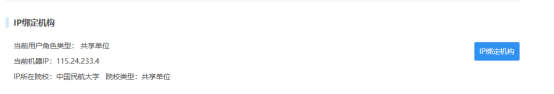 IP地址范围内,点击CADAL网址右上角的个人账号,进入个人设置页面,点击“IP绑定机构”,绑定成功有效期为180天。