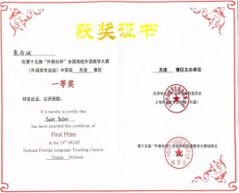 9月28日,第十五届“外教社杯”全国高校外语教学大赛(天津赛区)比赛在天津财经大学举行,外国语学院教师袁雨斌以优异的表现荣获天津市一等奖。