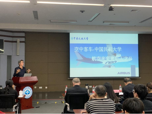 空中客车中国人力资源与工作场所负责人宁斐女士就空中客车中国员工体验与企业文化为题发表演讲,内容包括空中客车的现状、使命以及在中国的发展,重点介绍了空中客车的“先锋”精神、“绿色航空”理念以及“爱与责任”的企业文化,并提到了对航空青年人才的需求;空中客车(天津)飞机交付中心有限公司总经理Dr. Christoph SCHREMPP先生则对空中客车天津交付中心的设立、使命、主要活动以及目前取得的成果进行了简要说明,并详细介绍了空中客车(天津)交付中心目前所需的岗位及其资质要求,为有意进入空中客车工作同学指明了方向;空中客车数字化和信息管理执行副总裁Catherine JESTIN以“未来竞争力”为题展开演讲,着重提及“数字化IT”“人才”“合作”等关键词。她表示,各类人才必须合作才能实现数字化发展。