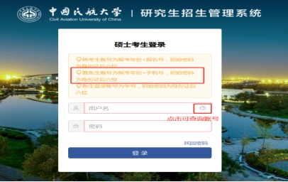 (5)上述材料请在报名申请后,通过我校研究生招生管理系统(https://yjszs.cauc.edu.cn/)“硕士考生登录”界面在线提交,账号密码见登录界面。