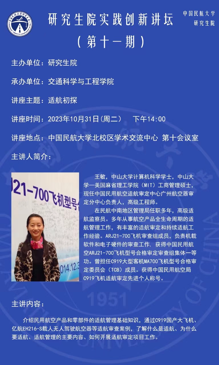 王敏,中山大学计算机科学学士,中山大学—美国麻省理工学院(MIT)工商管理硕士,现任中国民用航空适航审定中心广州航空器审定分中心负责人,高级工程师。