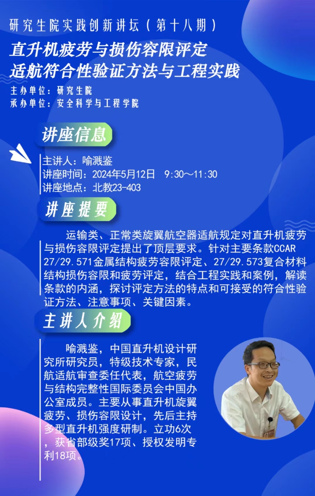 讲座主题:直升机疲劳与损伤容限评定适航符合性验证方法与工程实践