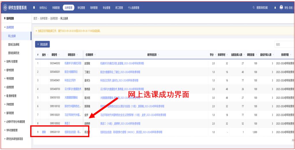 1. 系统网上选课阶段将于10月10日上午9:00开放,10月15日上午11:00关闭,研究生须在规定时间内完成网上选课;