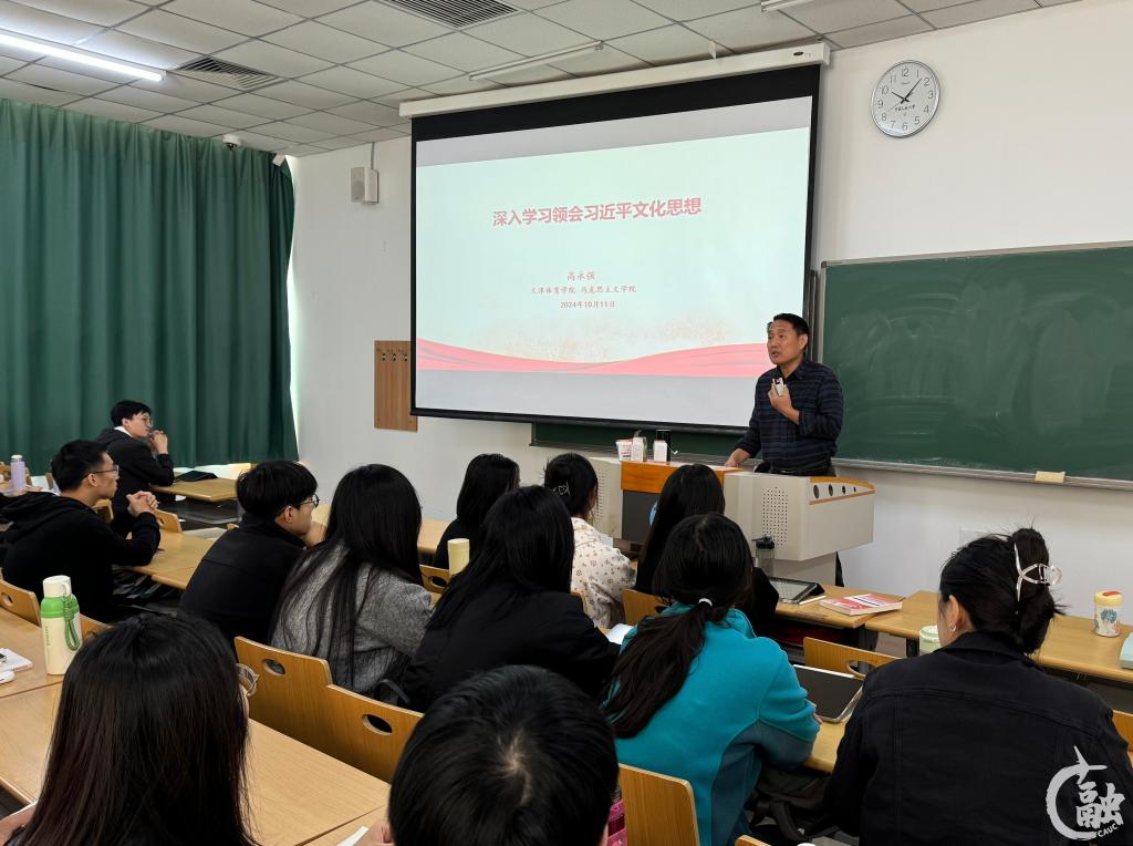 高永强以“深入学习领会习近平文化思想”为主题,从何以要重视文化建设、习近平文化思想的重要内容、青年大学生践行习近平文化思想的责任与担当三个方面进行讲授。高永强详细阐释文化软实力在综合国力竞争中的重要性和习近平文化思想的精髓,揭示文化之于国家发展的重要意义,并结合大学生在日常学习生活中的各种活动、实践,着重强调青年人要坚定文化自信,在文化传承中勇担使命。
