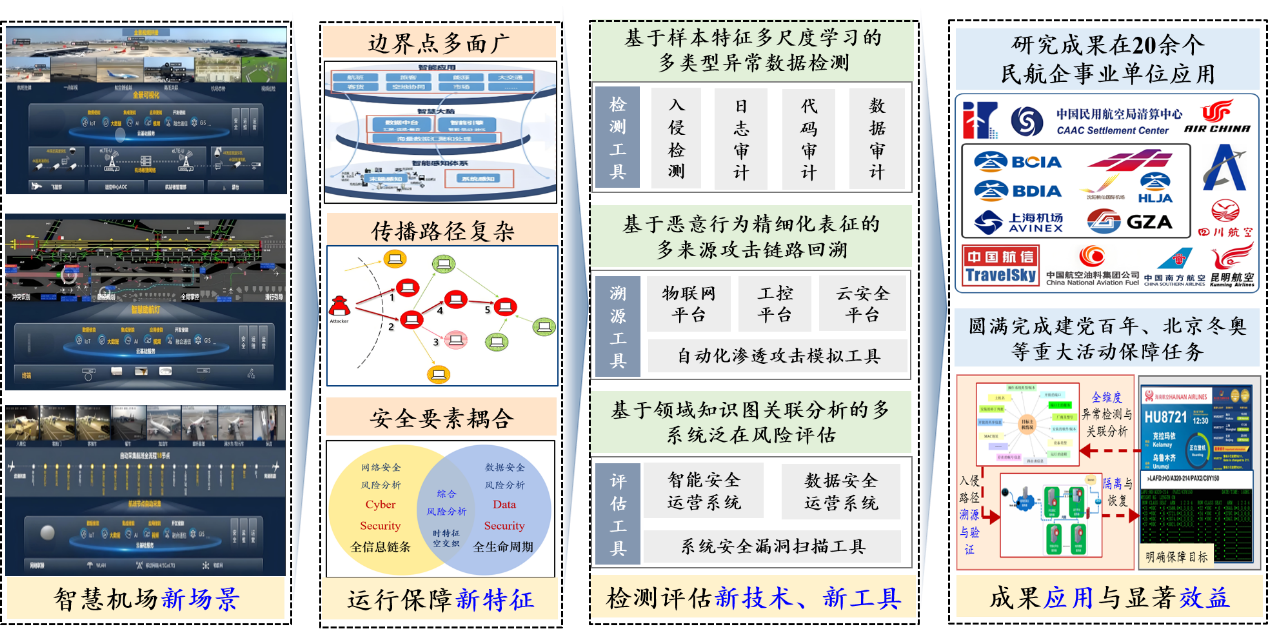 航空工程学院隋翯主持完成的“智慧机场重要信息系统安全检测评估关键技术研究与应用”项目获得二等奖,该成果由taptap下载安装安卓与广州大学、绿盟科技集团股份有限公司、上海机场(集团)有限公司合作完成,突破了面向智慧机场物理信息系统融合安全的大范围、细粒度、高精度检测评估关键技术,与现有Safety与Security分而治之的技术方法相比,显著提升了异常检测、风险溯源和安全评估能力,构建了完备的检测评估体系,实现了新安全形势下机场运行保障的关口前置、风险预判和主动防护。在项目长期研究过程中,发表论文42篇,授权专利21项,申请软件著作权6项,支撑行业标准5项,研制检测评估工具与平台11种。项目成果已在浦东机场、虹桥机场、大兴机场、首都机场等十余个机场,和空管局、中航油、中航信等多家民航单位广泛应用,完成重大活动保障任务20余次,取得了良好的社会与经济效益。