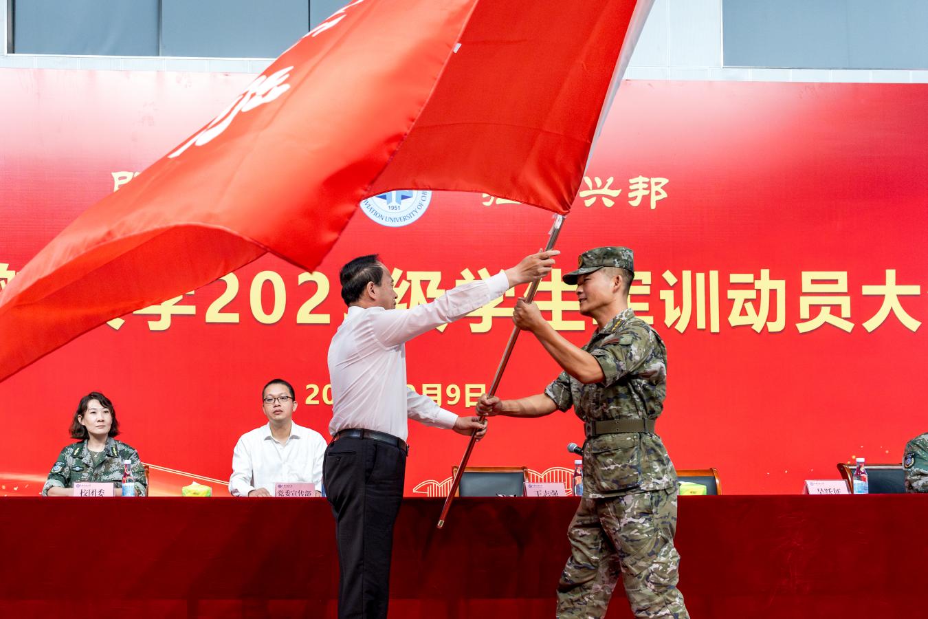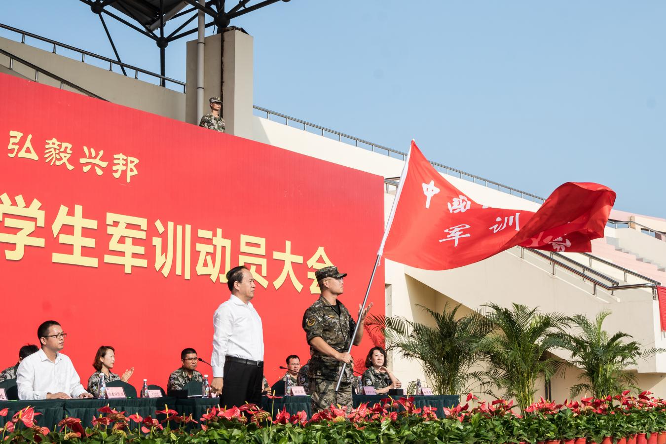 党委学工部负责人宣读军训团组成人员名单。在授旗仪式上,军训团向各连授连旗。