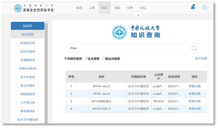 3. 专业知识的智能导引,平台拥有11类知识库、4项知识管理、3维知识统计的智能知识图谱和导引功能,具备知识关联和自积累能力,构建面向平台用户的智能化知识图谱,辅助用户迅速掌握安全性设计技术。