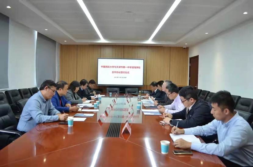 10月11日,学校教务处招生办联合飞行分校赴天津一中滨海学校,与中学校领导就学生联合培养前期准备工作进行了深入研讨交流,就协议基本框架达成了一致。