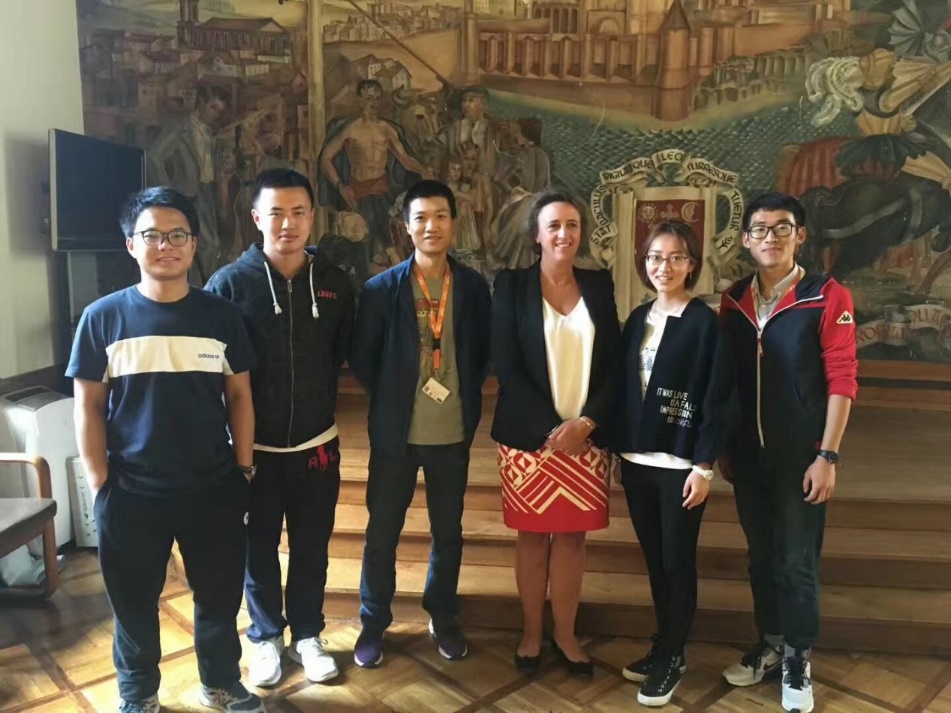 首届双学位项目学生在法国参加开学典礼时与阿尔比市市长合影